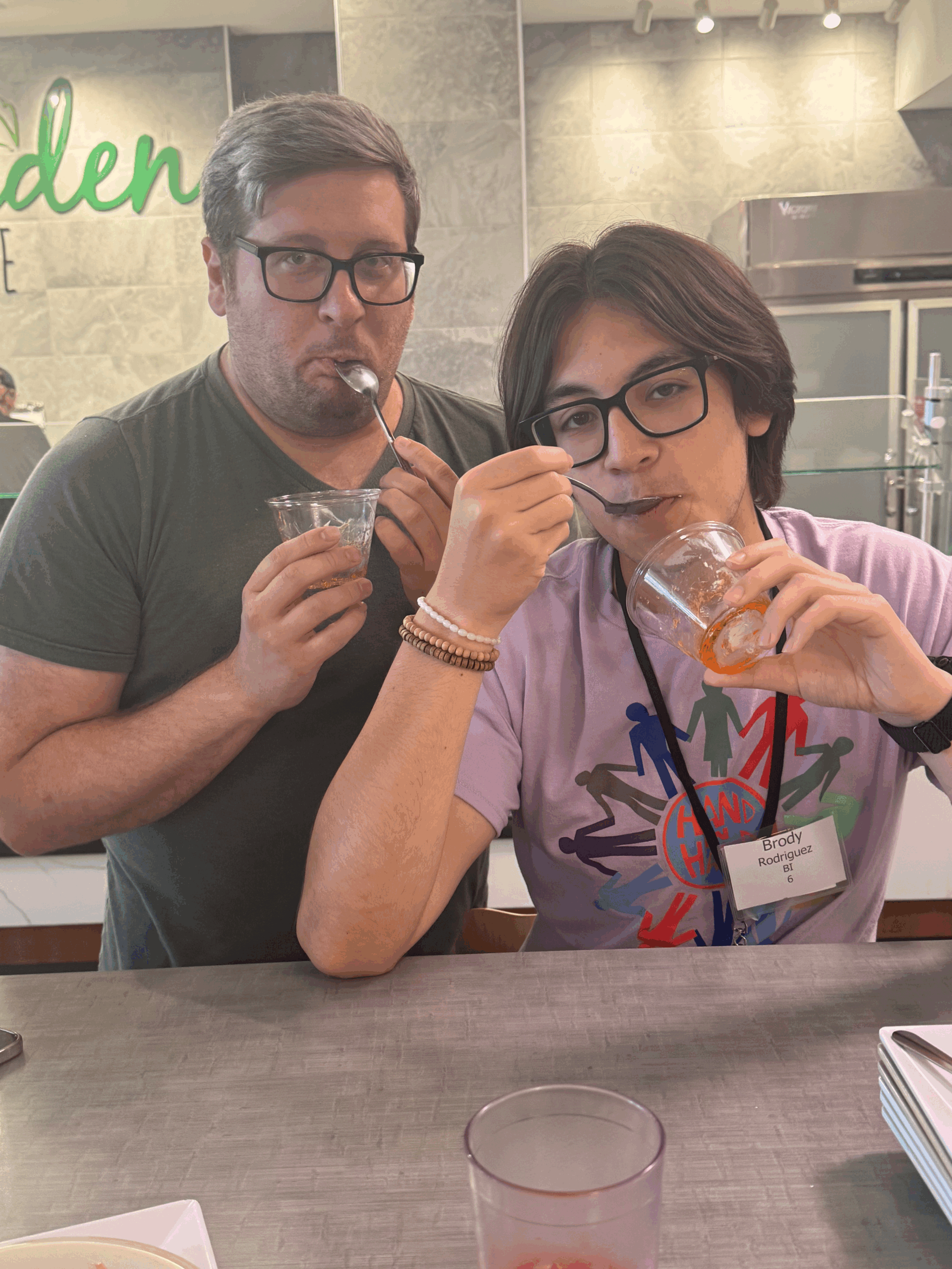 Each day during our meals, especially lunch, many shenanigans take place. Today, Matt and Brody decided to “chug” their jello to “honor” a previous member who did this on our tour in June (shoutout Teigue). Definitely hilarious and entertaining to watch. We know how to sing AND have fun.